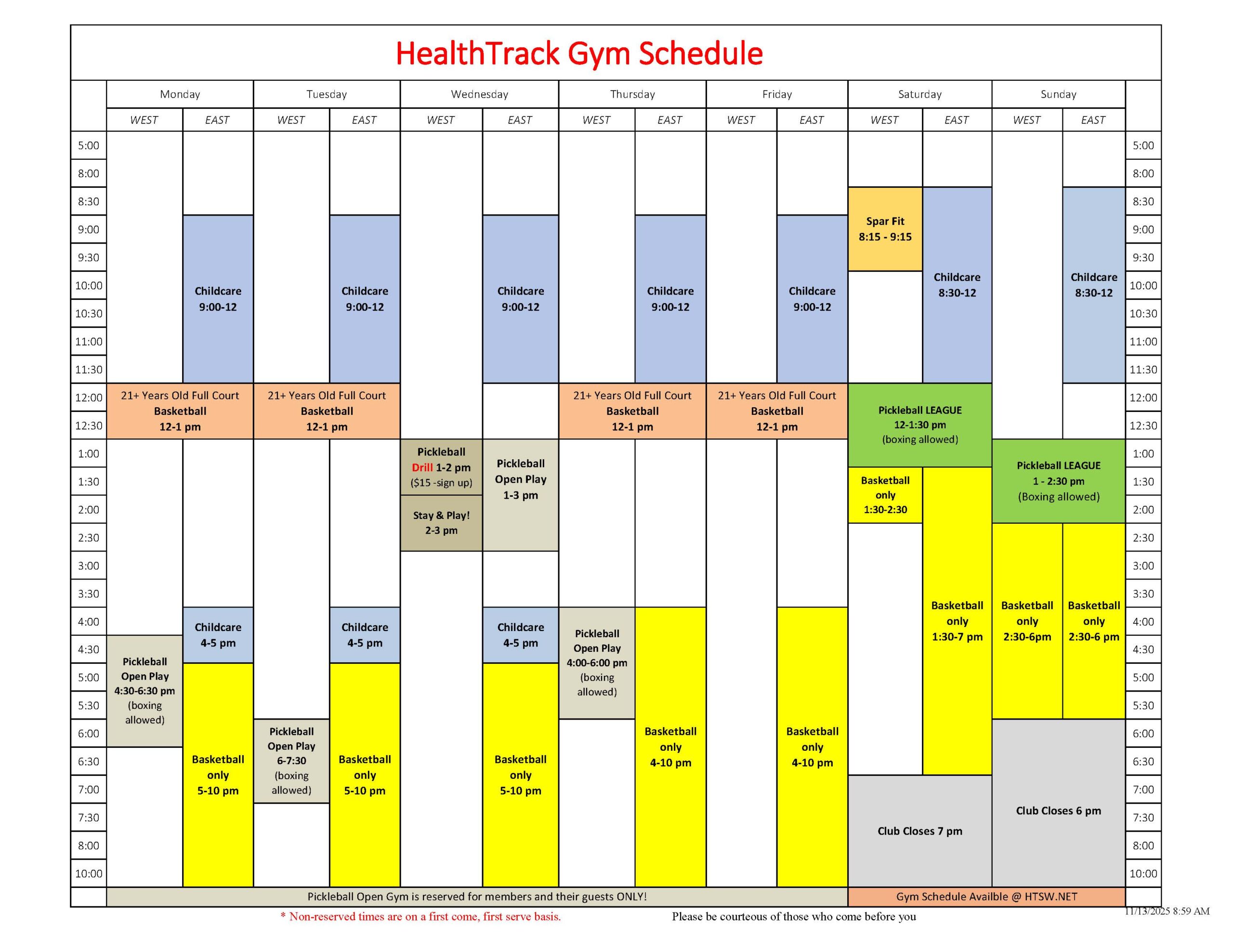 Gym Schedule